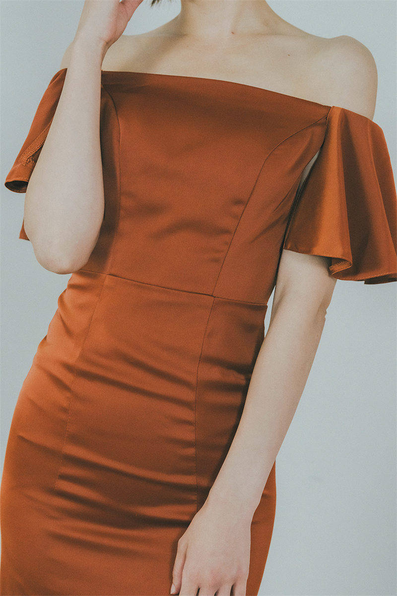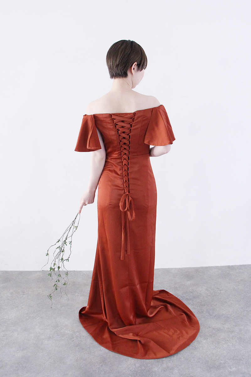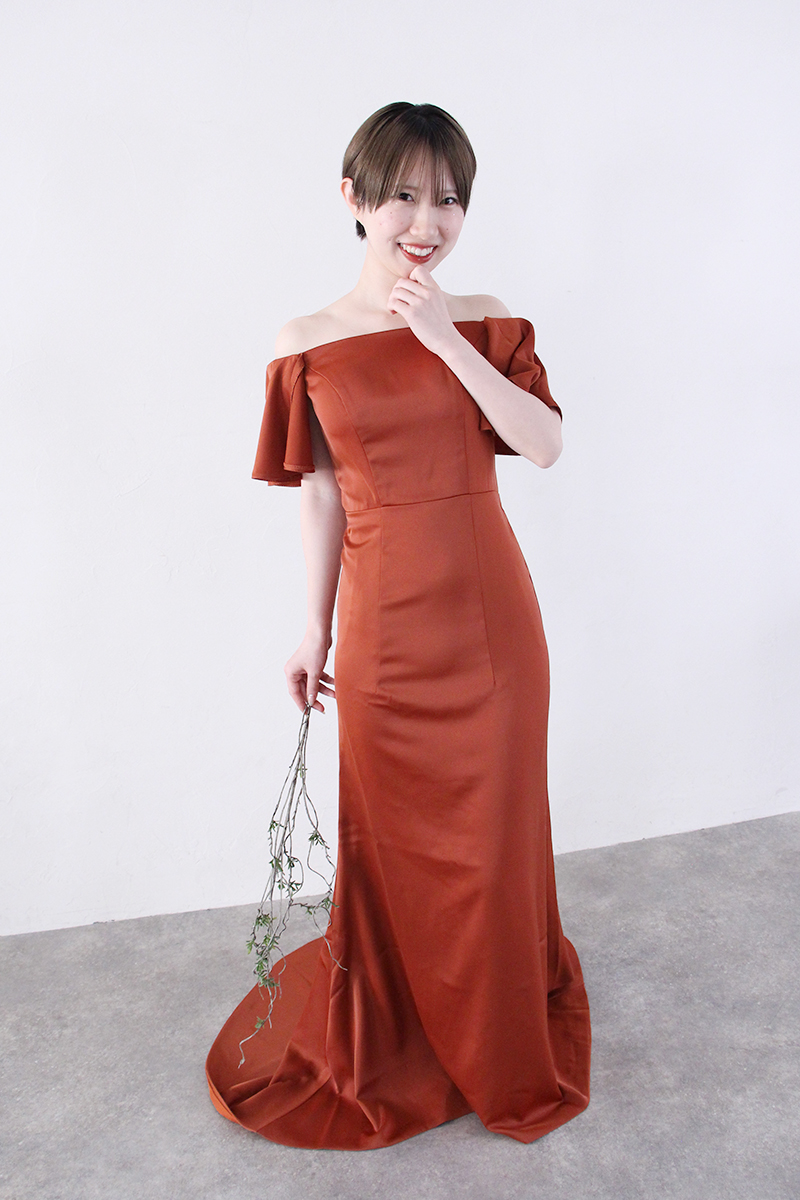 オフショルダーはフレアタイプで、二の腕のラインが気になる方にもおすすめです。