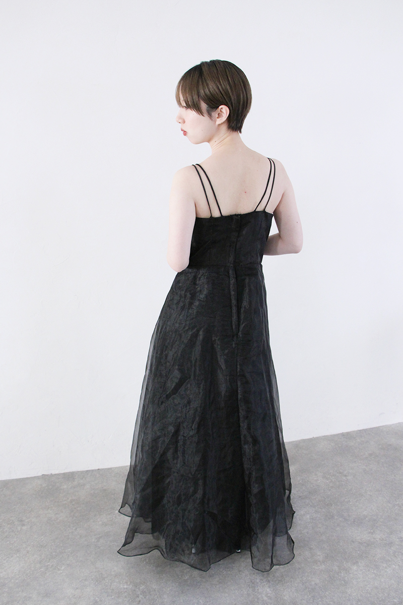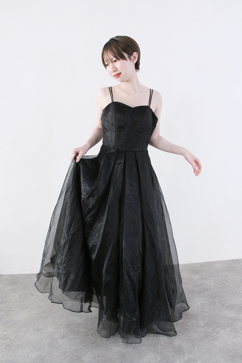 少しツヤのある生地。シンプルなキャミソールタイプでありながら、ストラップが2連となっており、さりげないデザインポイント。