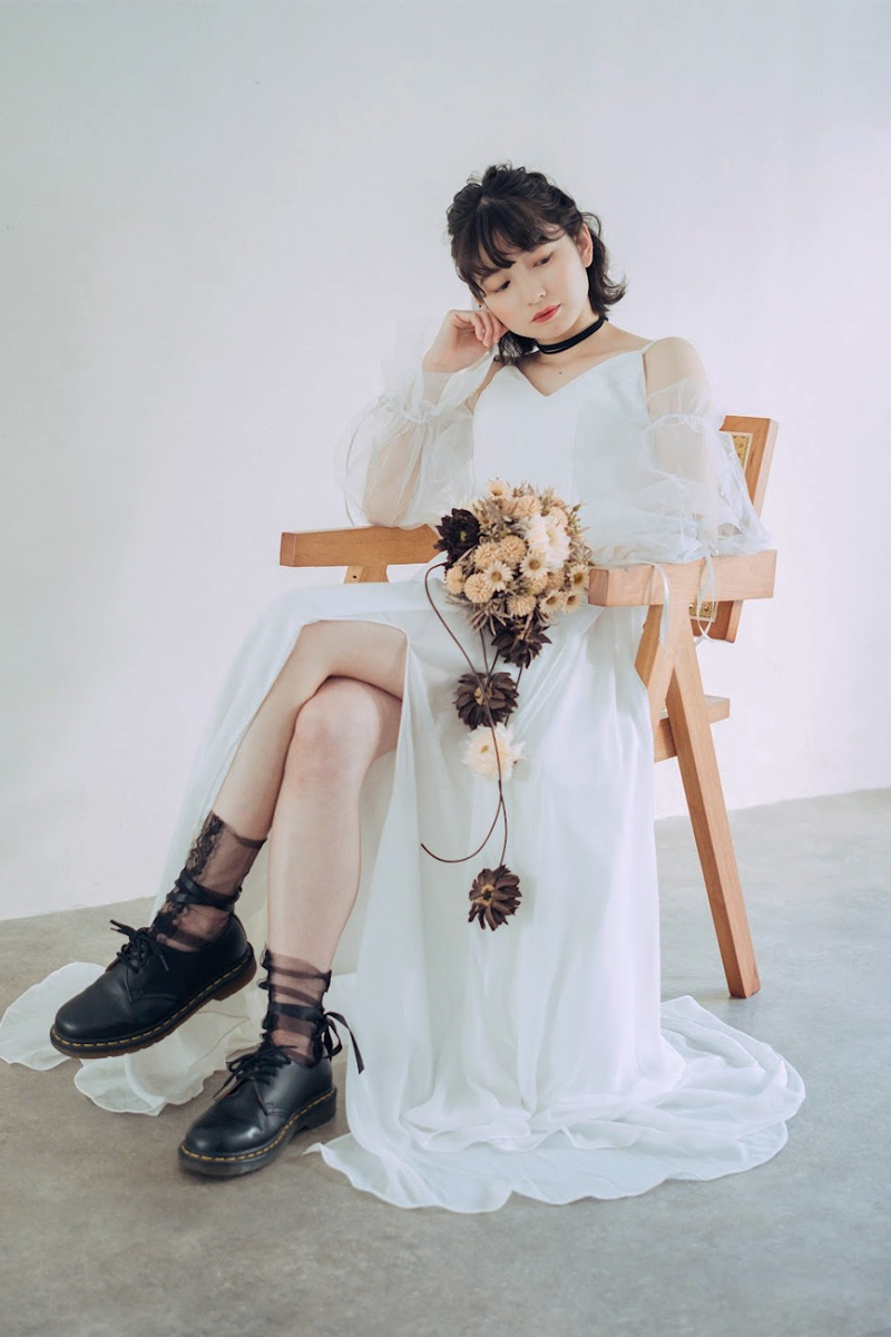 左前にスリットあり。パンプスはもちろん、スニーカーやブーツなどと合わせても表情が変わります。