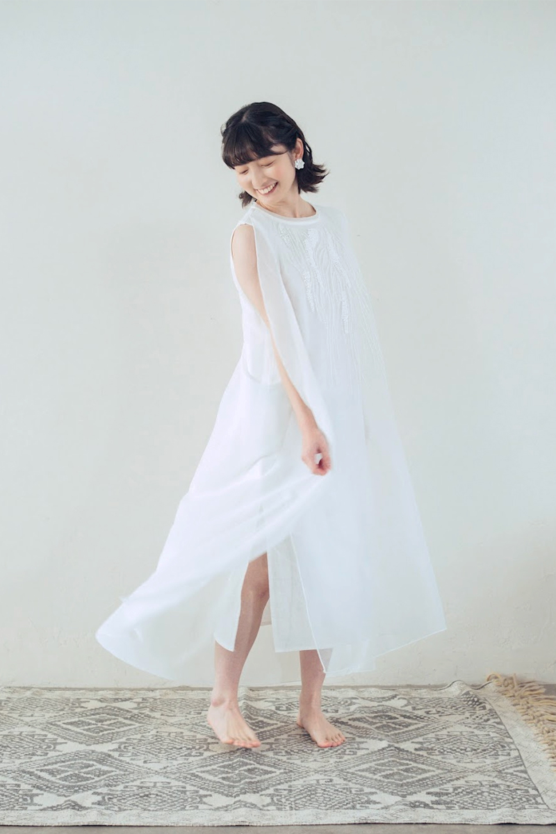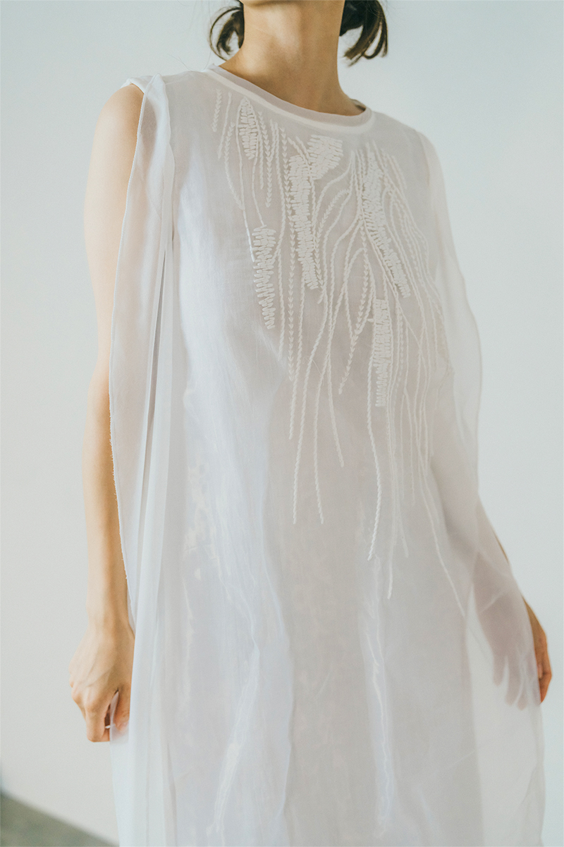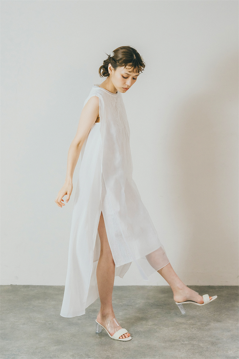 麻・リネンとオーガンジーのレイヤーデザイン。