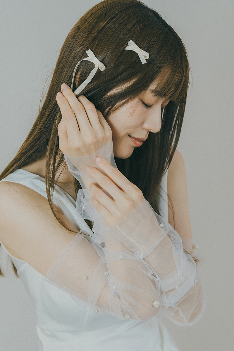 ほどよく散りばめられたパールが、シンプルなドレスを華やかに演出します。