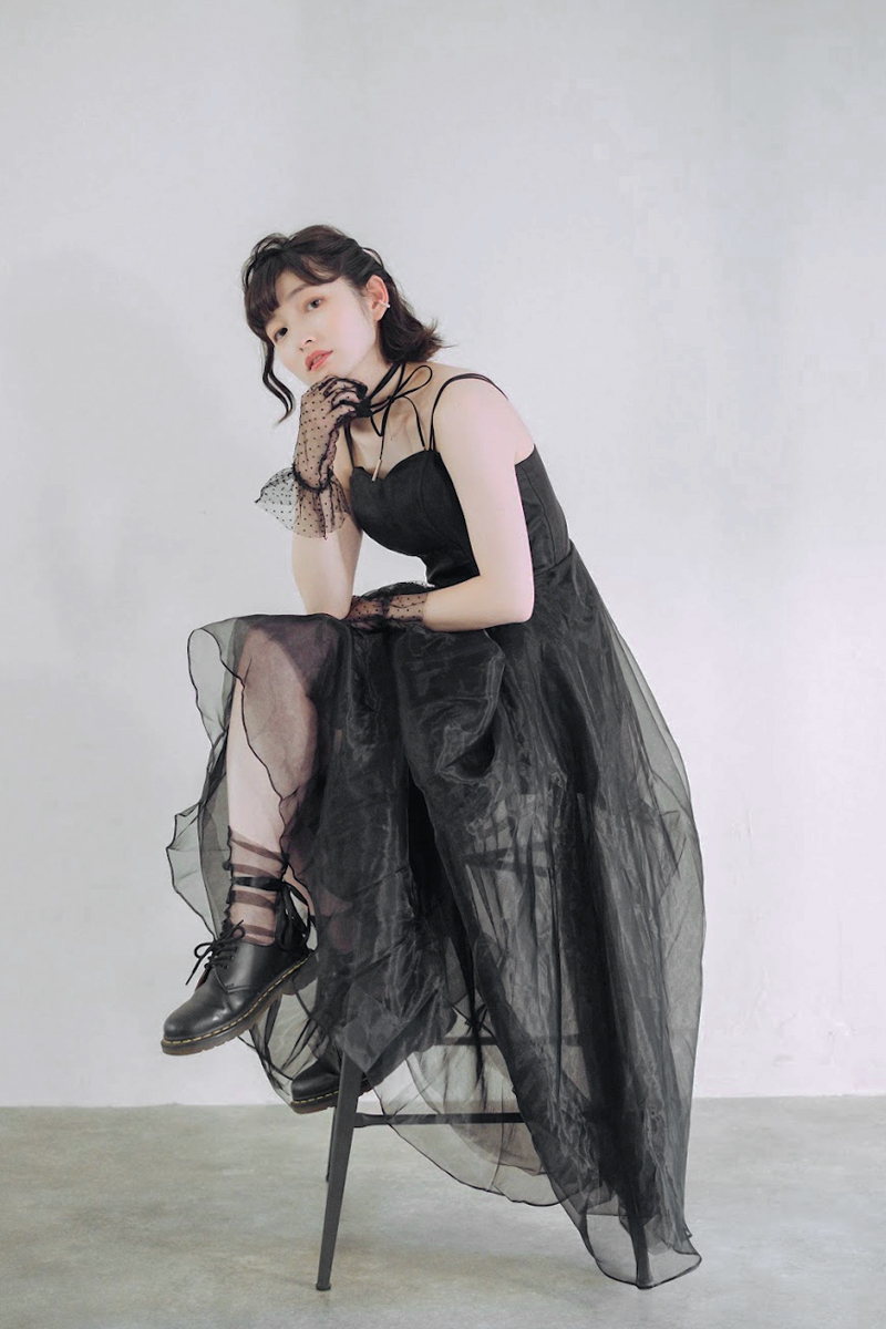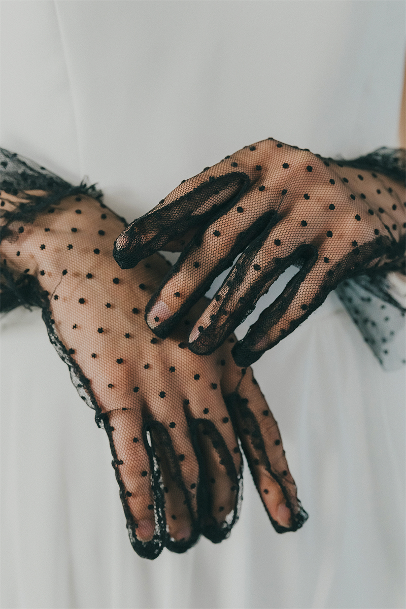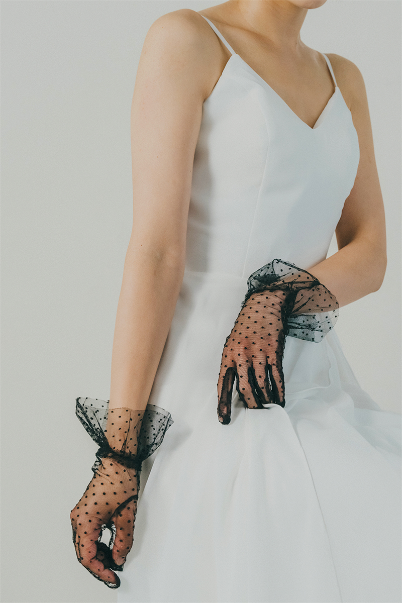 ブラックドレスにもホワイトドレスにも合うドットのチュールグローブ。